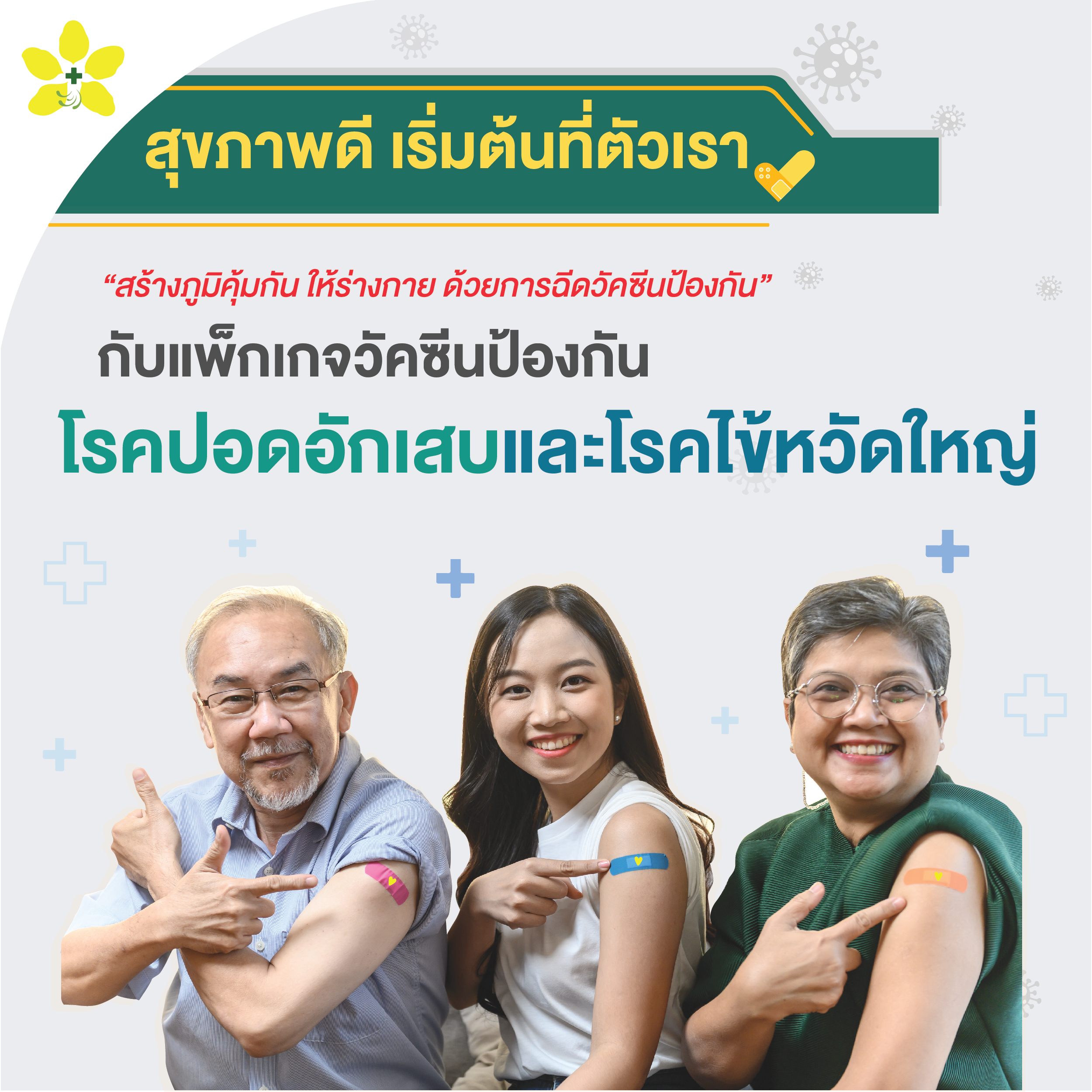 สุขภาพดี เริ่มต้นที่ตัวเรา “สร้างภูมิคุ้มกัน ให้ร่างกาย ด้วยการฉีดวัคซีนป้องกัน” กับแพ็กเกจวัคซีนป้องกัน โรคปอดอักเสบ และโรคไข้หวัดใหญ่